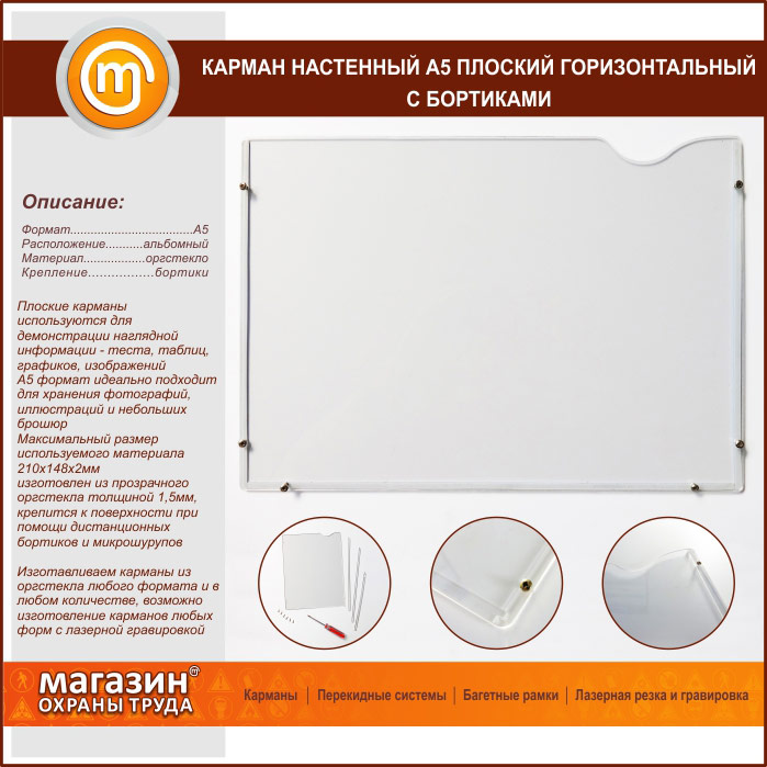 Карман настенный А5 плоский горизонтальный с бортиками в Уфе купить