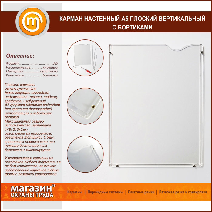 Карман настенный А5 плоский вертикальный с бортиками в Уфе купить
