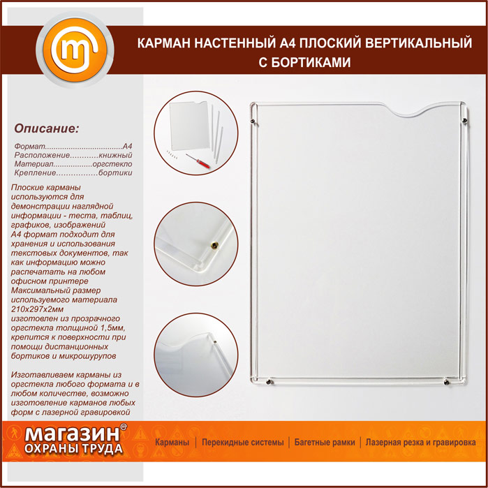 Карман настенный А4 плоский вертикальный с бортиками в Уфе купить