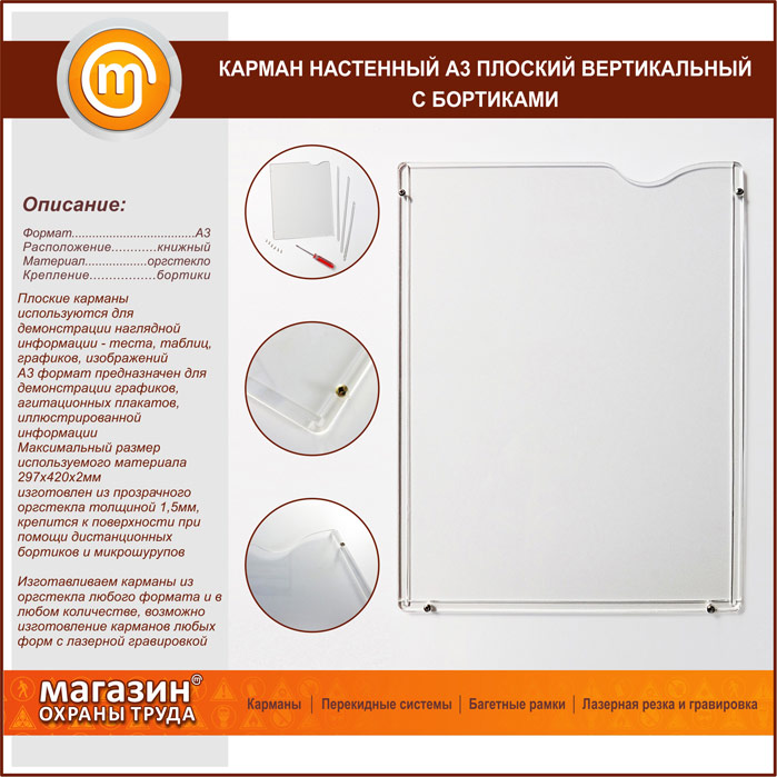 Карман настенный А3 плоский вертикальный с бортиками в Уфе купить