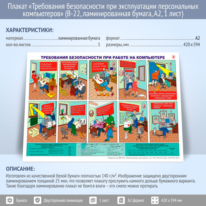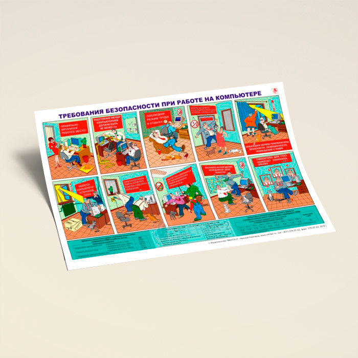 Плакат «Требования безопасности при эксплуатации персональных компьютеров» (В-22, ламинированная бумага, А2, 1 лист) в Уфе купить