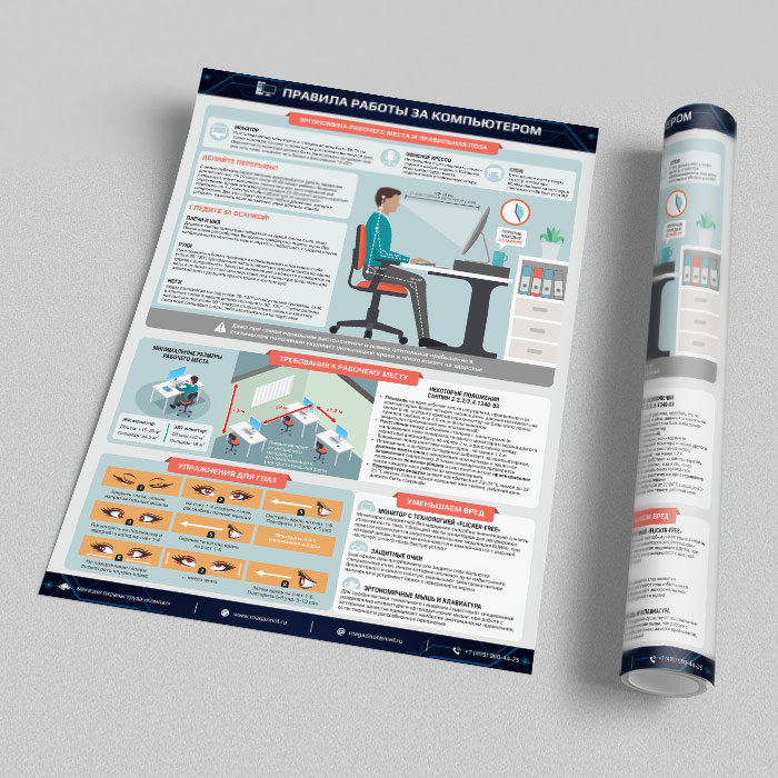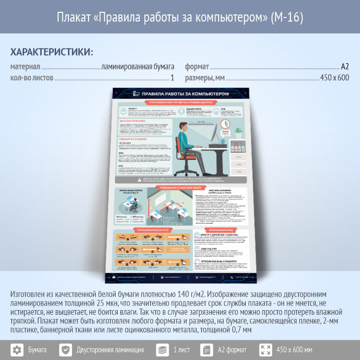 Плакат «Правила работы за компьютером» (М-16, ламинированная бумага, А2, 1 лист) в Уфе купить