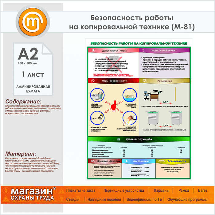 Плакат «Безопасность работы на копировальной технике» (М-81, ламинированная бумага, А2, 1 лист) в Уфе купить