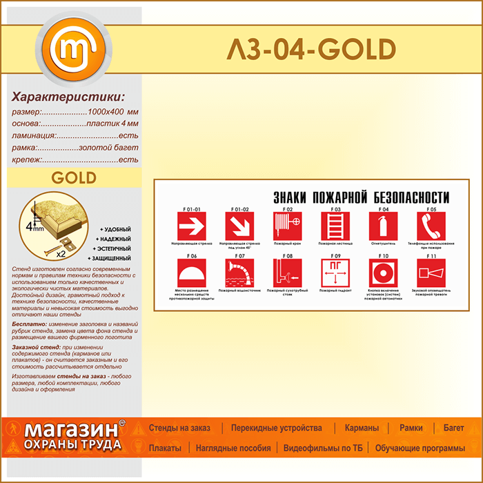 Стенд «Знаки пожарной безопасности» (LZ-04-GOLD) в Уфе купить