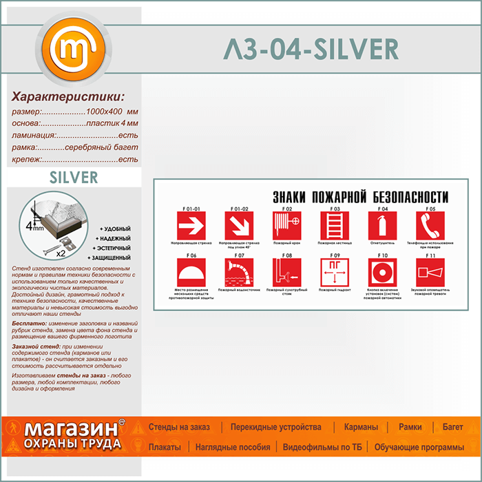 Стенд «Знаки пожарной безопасности» (LZ-04-SILVER) в Уфе купить
