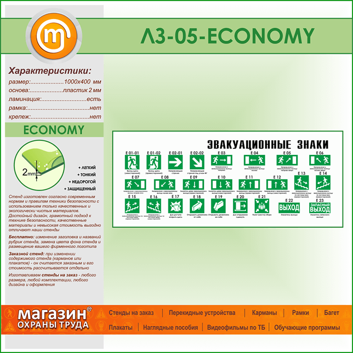 Стенд «Эвакуационные знаки» (LZ-05-ECONOMY) в Уфе купить