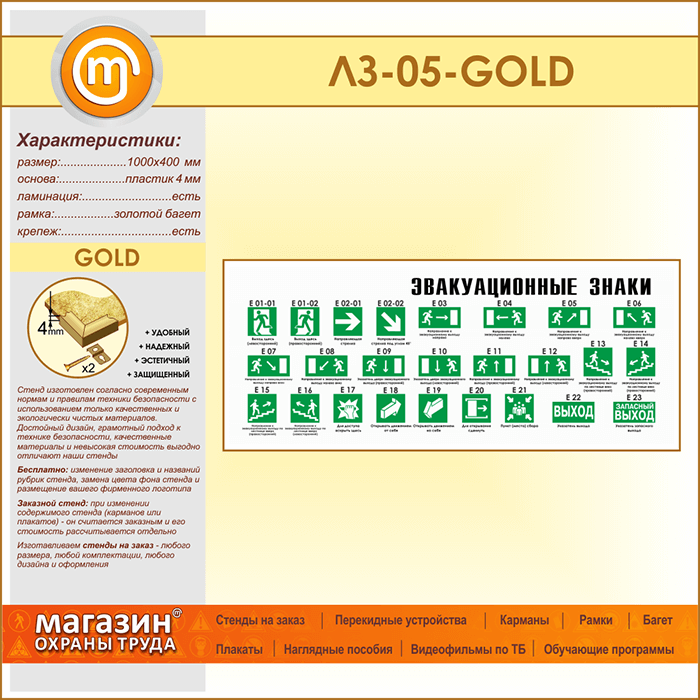 Стенд «Эвакуационные знаки» (LZ-05-GOLD) в Уфе купить