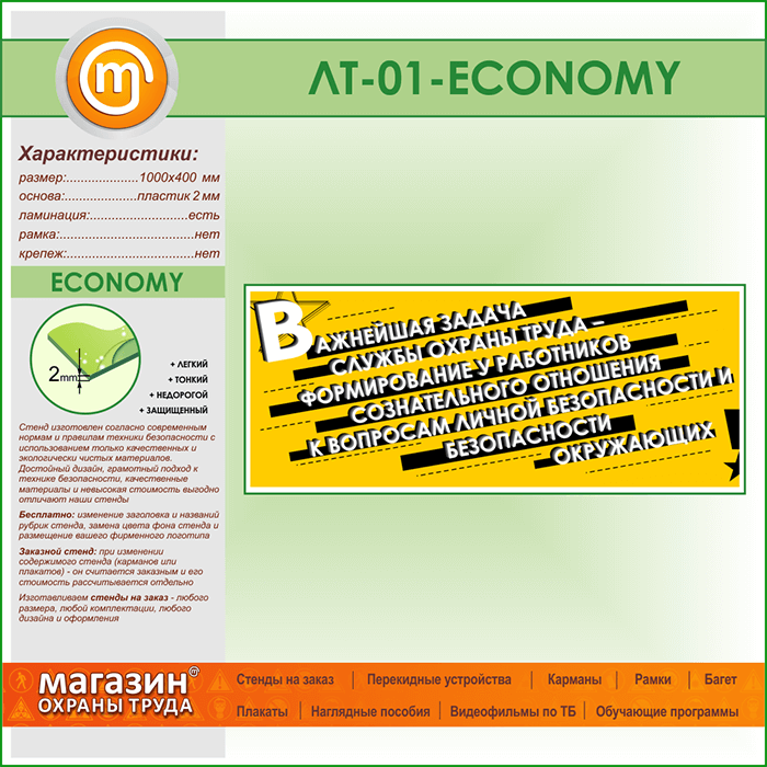 Лозунг «Важнейшая задача службы охраны труда...» (LT-01-ECONOMY) в Уфе купить
