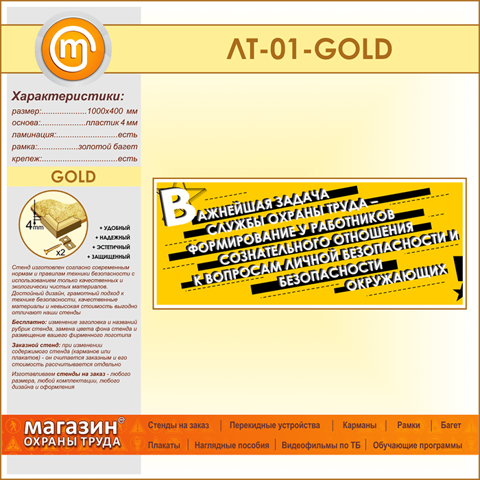 Лозунг «Важнейшая задача службы охраны труда...» (LT-01-GOLD) в Уфе купить