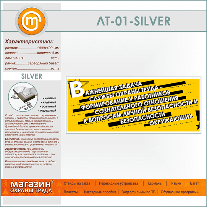Лозунг «Важнейшая задача службы охраны труда...» (LT-01-SILVER) в Уфе купить