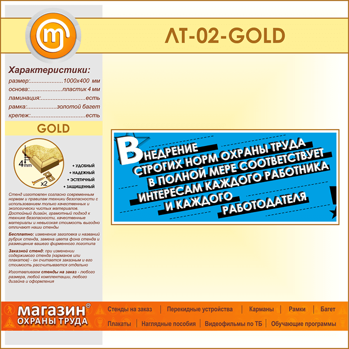 Лозунг «Внедрение строгих норм охраны труда...» (LT-02-GOLD) в Уфе купить