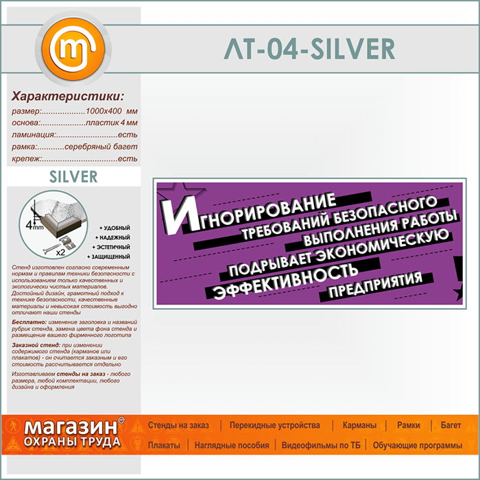 Лозунг «Игнорирование безопасного выполнения работы...» (LT-04-SILVER) в Уфе купить