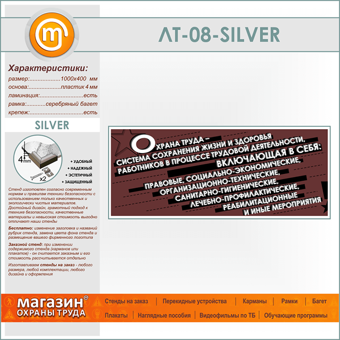 Лозунг «Охрана труда - система сохранения жизни и здоровья...» (LT-08-SILVER) в Уфе купить