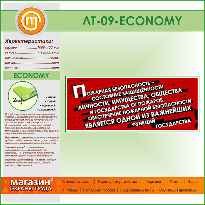 Лозунг «Пожарная безопасность - состояние защищенности...» (LT-09-ECONOMY) в Уфе купить