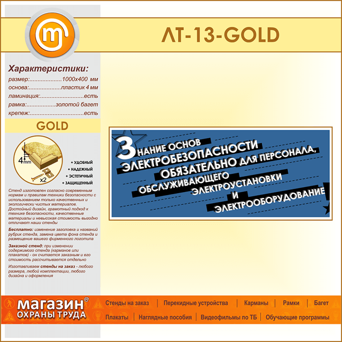 Лозунг «Знание основ электробезопасности обязательно...» (LT-13-GOLD) в Уфе купить