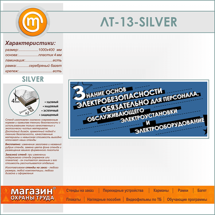 Лозунг «Знание основ электробезопасности обязательно...» (LT-13-SILVER) в Уфе купить