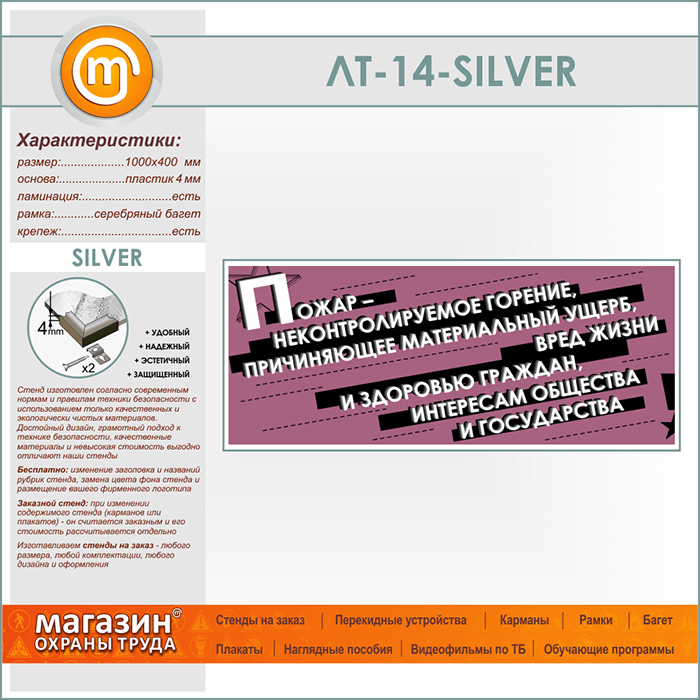 Лозунг «Пожар - неконтроллируемое горение...» (LT-14-SILVER) в Уфе купить