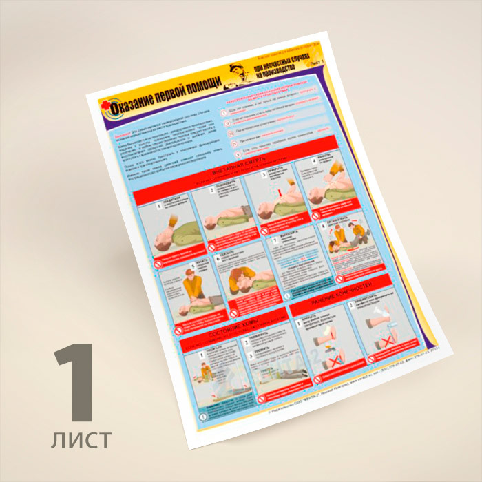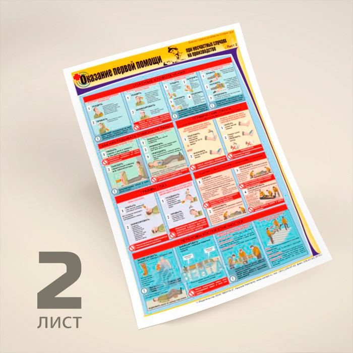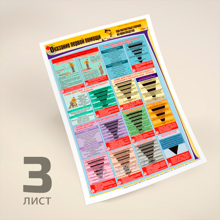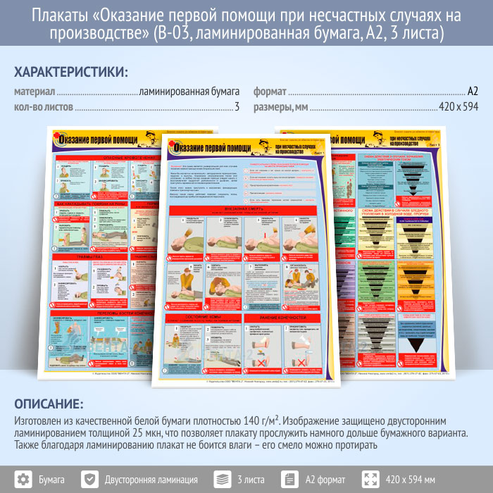 Плакаты «Оказание первой помощи при несчастных случаях на производстве» (В-03, ламинированная бумага, А2, 3 листа) в Уфе купить