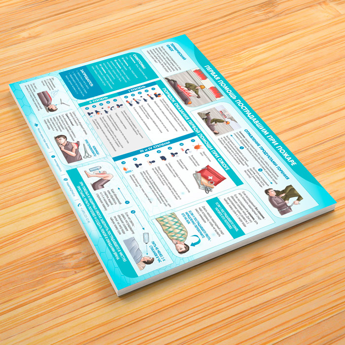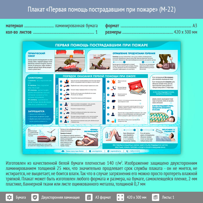 Плакат «Первая помощь пострадавшим при пожаре» (М-22, ламинированная бумага, А3, 1 лист) в Уфе купить
