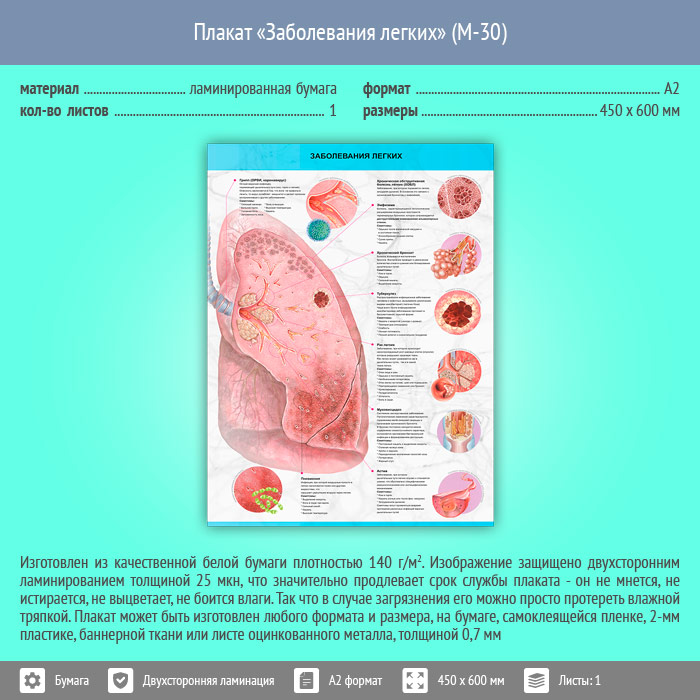 Плакат «Заболевания легких» (М-30, ламинированная бумага, А2, 1 лист) в Уфе купить
