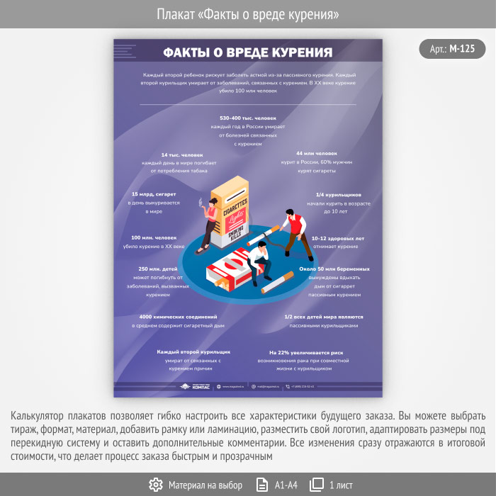 Плакат «Факты о вреде курения» (М-125, 1 лист) в Уфе купить