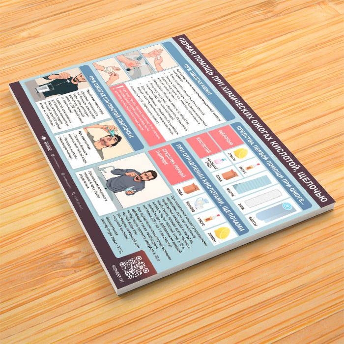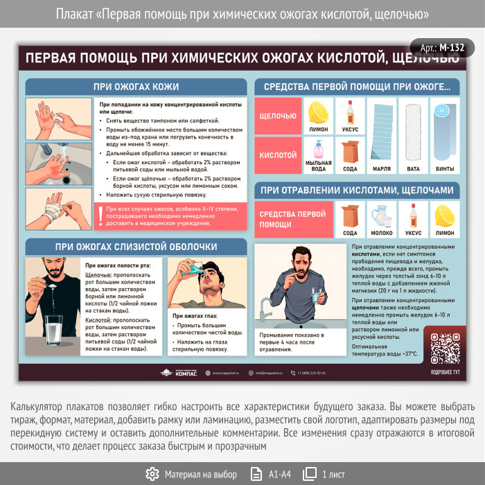 Плакат «Первая помощь при химических ожогах кислотой, щелочью» с QR (М-132, 1 лист) в Уфе купить