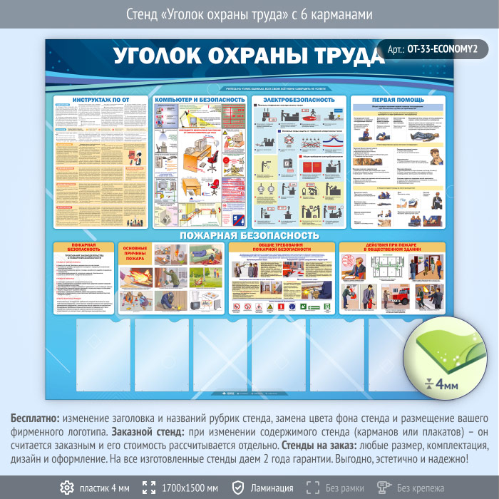 Стенд «Уголок охраны труда» с 6 карманами (OT-33-ECONOMY2) в Уфе купить