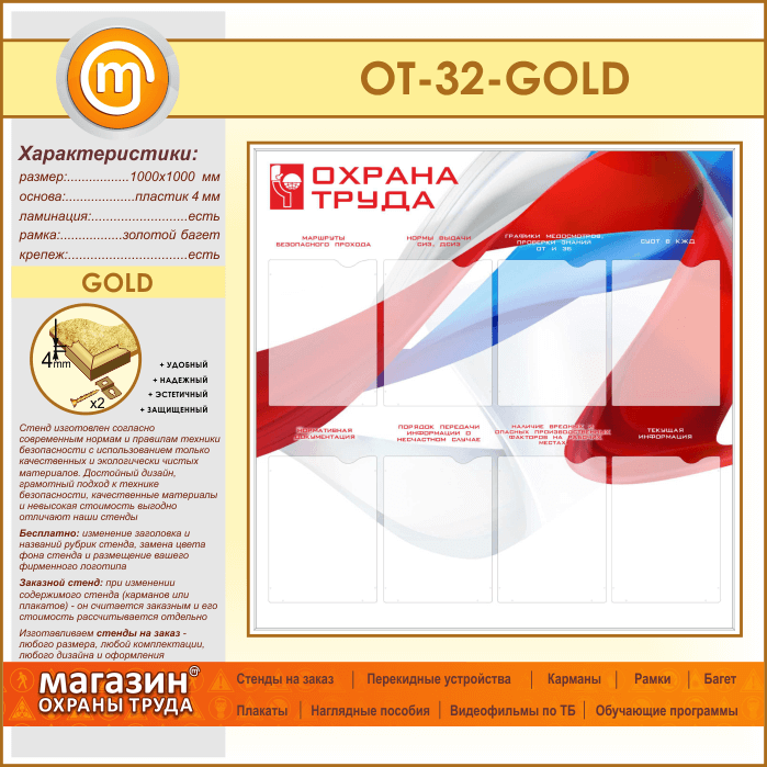 Стенд «Охрана труда» с 8 карманами (OT-32-GOLD) в Уфе купить