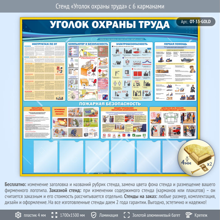 Стенд «Уголок охраны труда» с 6 карманами (OT-33-GOLD) в Уфе купить