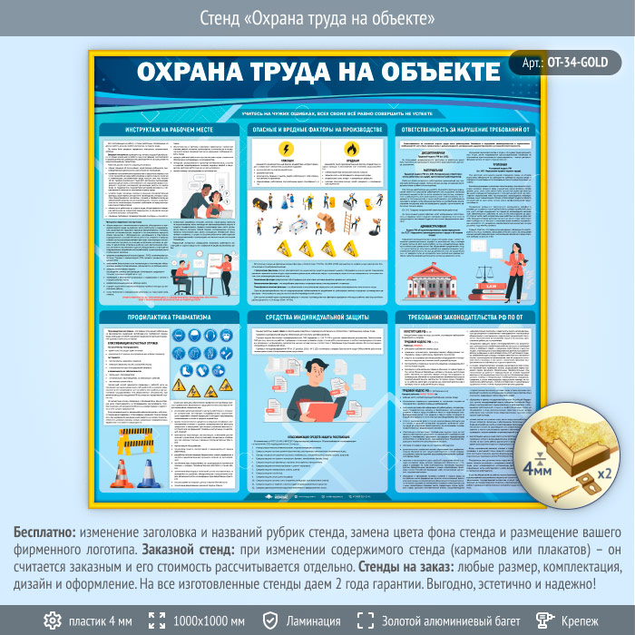 Стенд «Охрана труда на объекте» (OT-34-GOLD) в Уфе купить