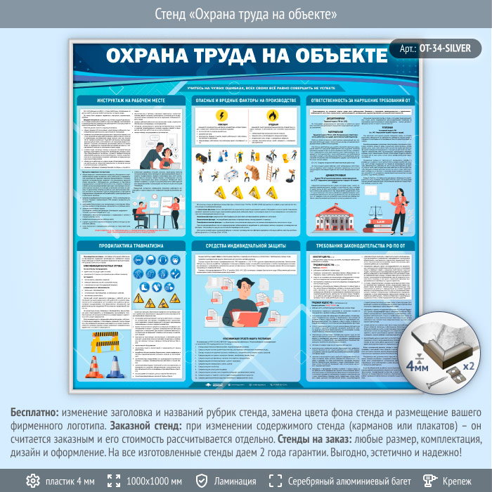 Стенд «Охрана труда на объекте» (OT-34-SILVER) в Уфе купить