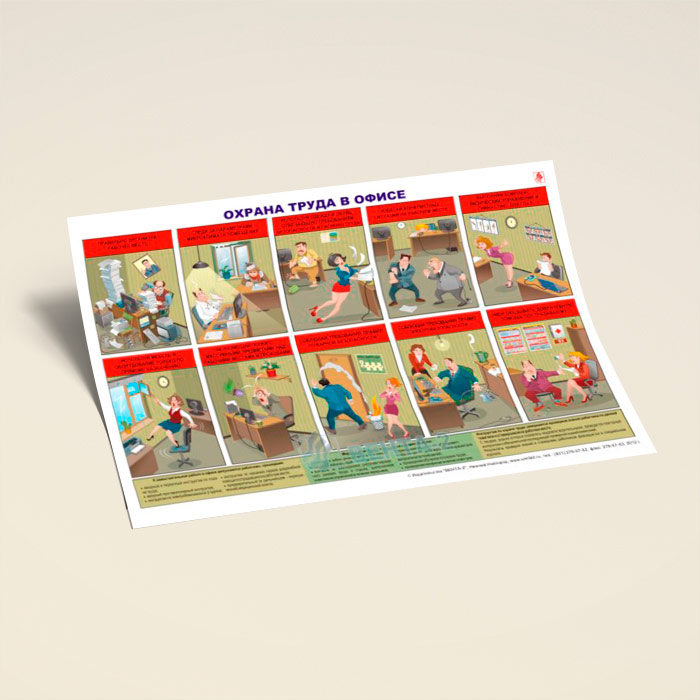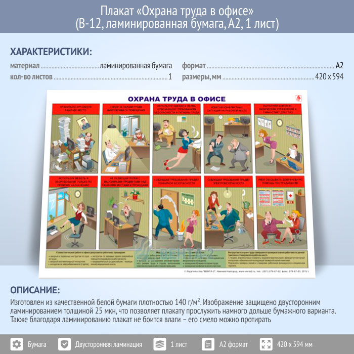 Плакат «Охрана труда в офисе» (В-12, ламинированная бумага, А2, 1 лист) в Уфе купить