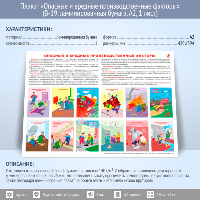 Плакат «Опасные и вредные производственные факторы» (В-19, ламинированная бумага, А2, 1 лист) в Уфе купить