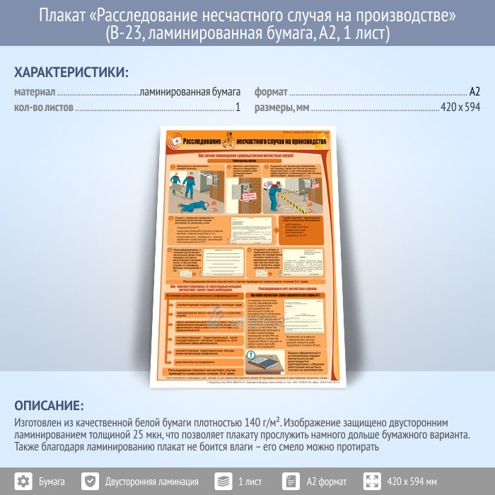 Плакат «Расследование несчастного случая на производстве» (В-23, ламинированная бумага, А2, 1 лист) в Уфе купить