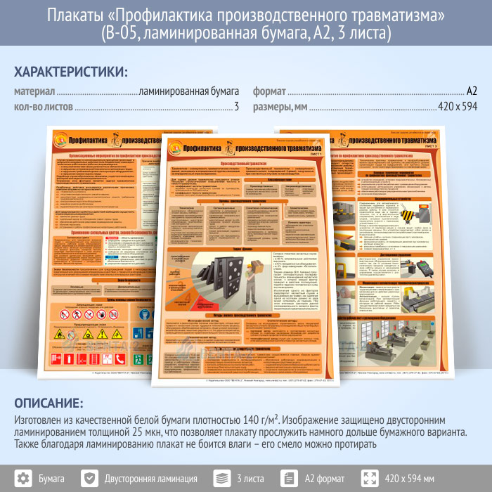 Плакаты «Профилактика производственного травматизма» (В-05, ламинированная бумага, А2, 3 листа) в Уфе купить