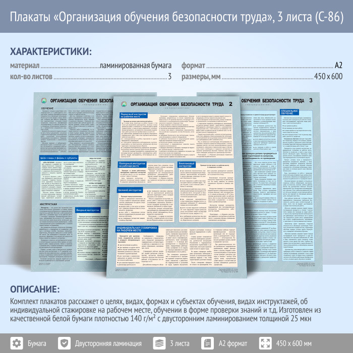 Плакаты «Организация обучения безопасности труда» (С-86, ламинированная бумага, А2, 3 листа) в Уфе купить