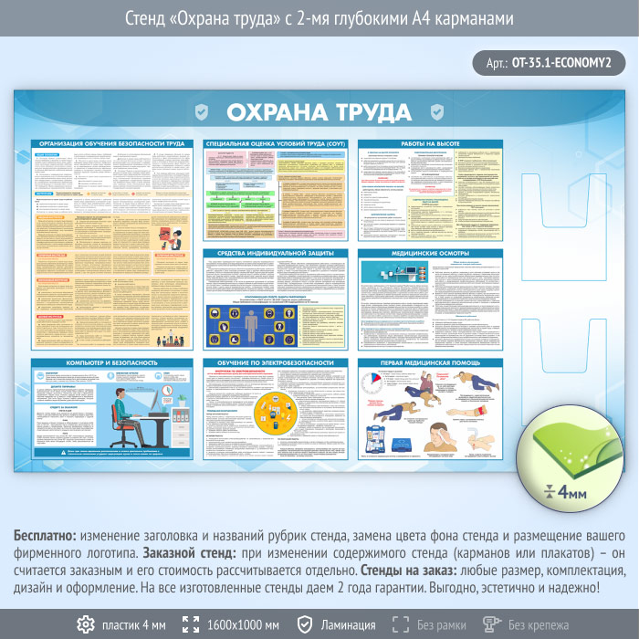 Стенд «Охрана труда» с 2-мя глубокими А4 карманами (OT-35.1-ECONOMY2) в Уфе купить