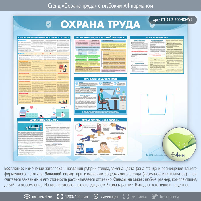 Стенд «Охрана труда» с глубоким А4 карманом (OT-35.2-ECONOMY2) в Уфе купить