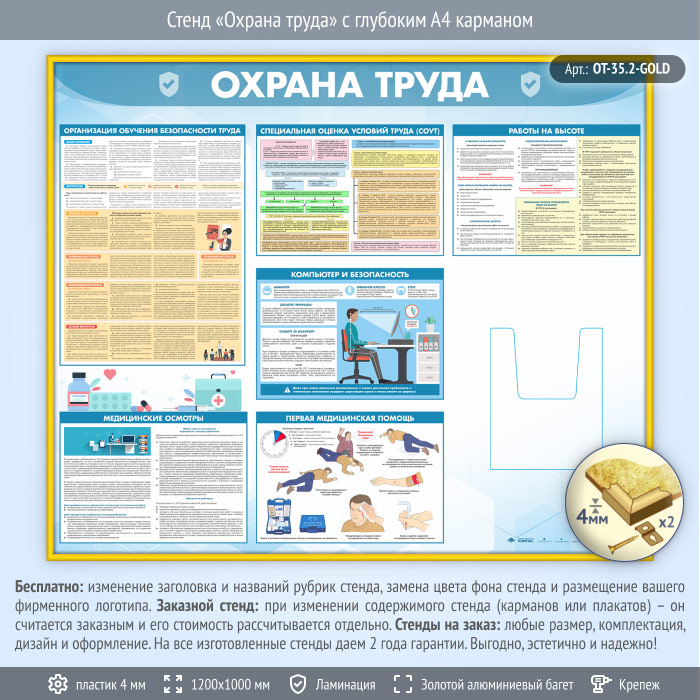 Стенд «Охрана труда» с глубоким А4 карманом (OT-35.2-GOLD) в Уфе купить