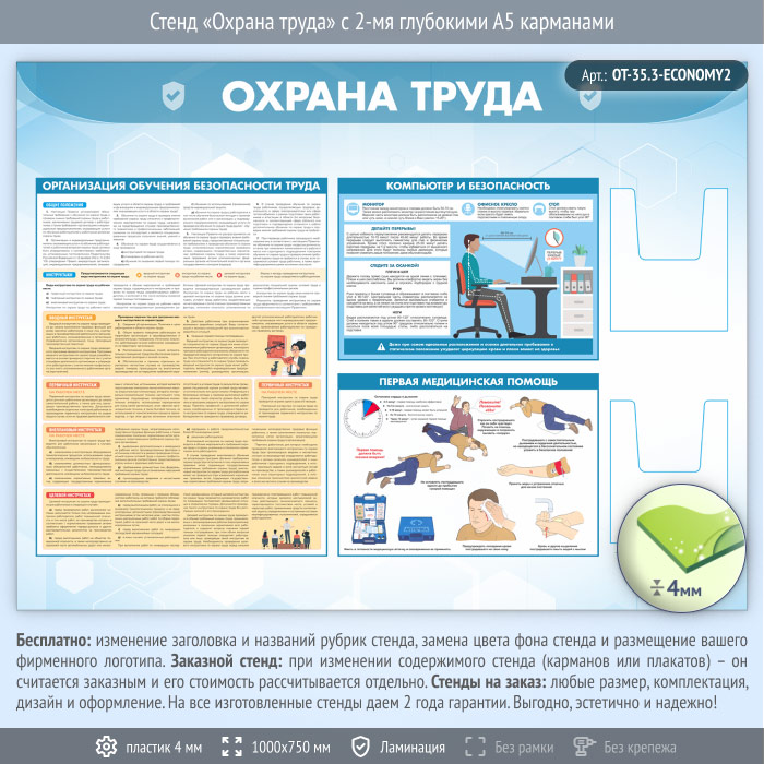 Стенд «Охрана труда» с 2-мя глубокими А5 карманами (OT-35.3-ECONOMY2) в Уфе купить