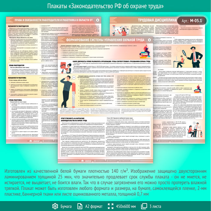 Плакаты «Законодательство РФ об охране труда» (М-05.1, ламинированная бумага, А2, 3 листа) в Уфе купить