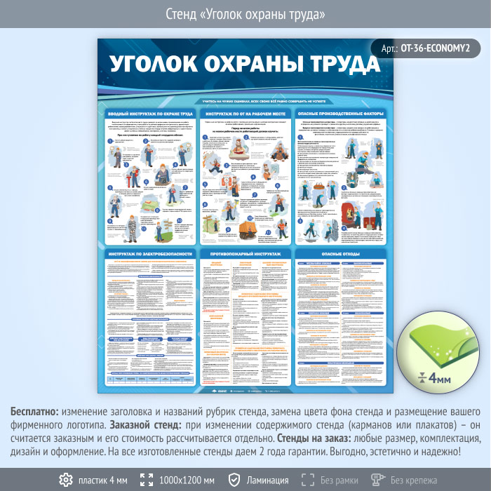 Стенд «Уголок охраны труда» (OT-36-ECONOMY2) в Уфе купить