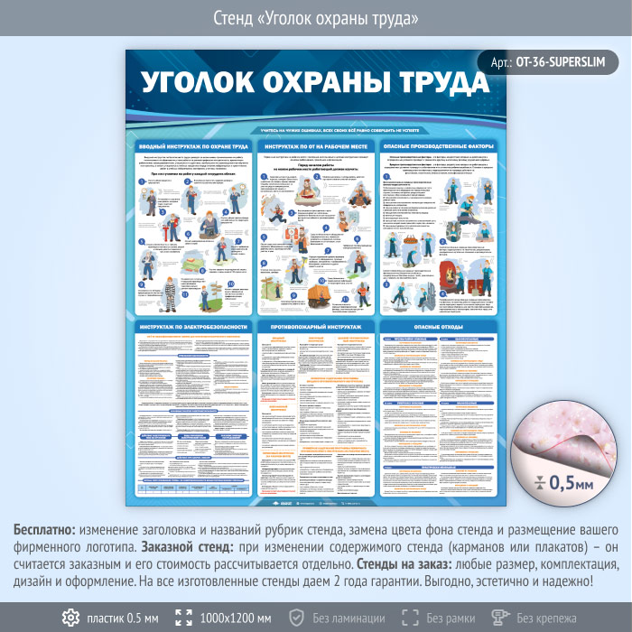Стенд «Уголок охраны труда» (OT-36-SUPERSLIM) в Уфе купить