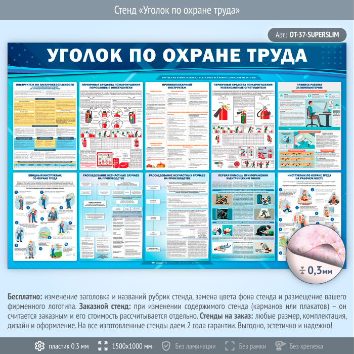 Стенд «Уголок по охране труда» (OT-37-SUPERSLIM) в Уфе купить