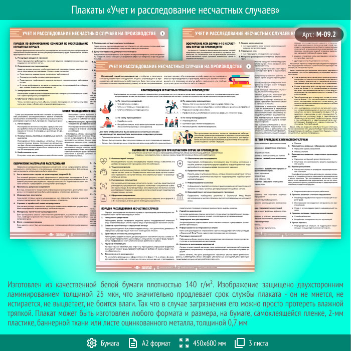 Плакаты «Учет и расследование несчастных случаев» (М-09.2, ламинированная бумага, А2, 3 листа) в Уфе купить