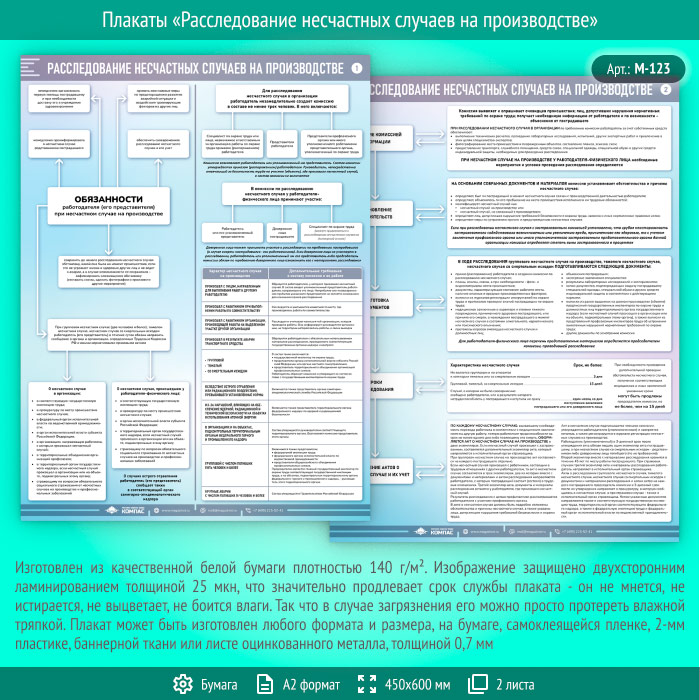 Плакаты «Расследование несчастных случаев на производстве» (М-123, ламинированная бумага, А2, 2 листа) в Уфе купить