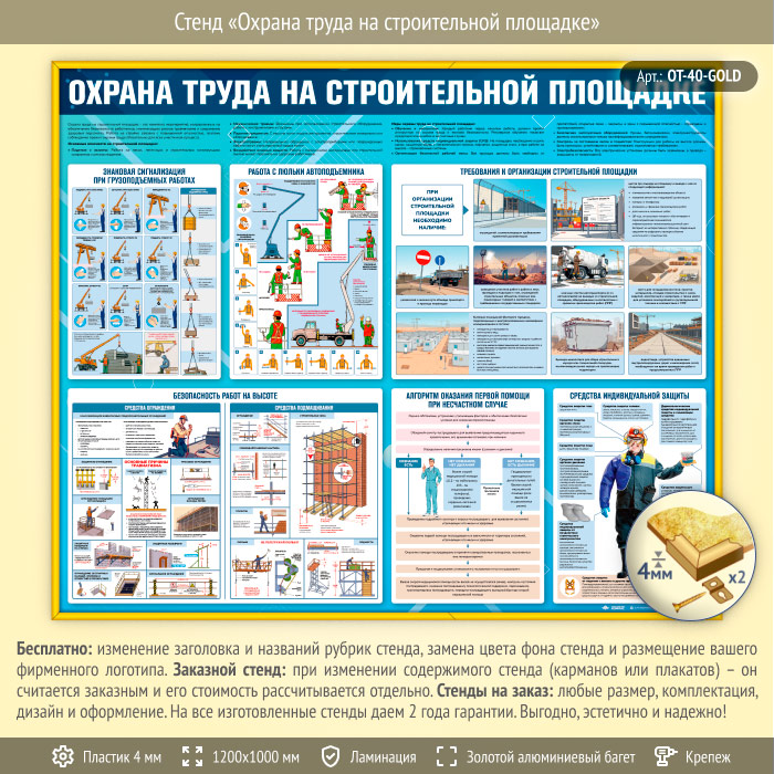 Стенд «Охрана труда на строительной площадке» (OT-40-GOLD) в Уфе купить