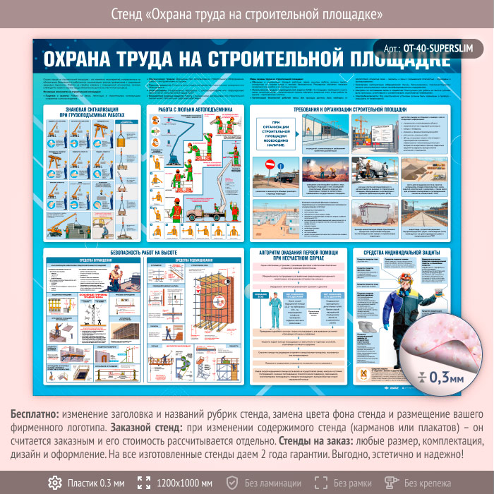 Стенд «Охрана труда на строительной площадке» (OT-40-SUPERSLIM) в Уфе купить