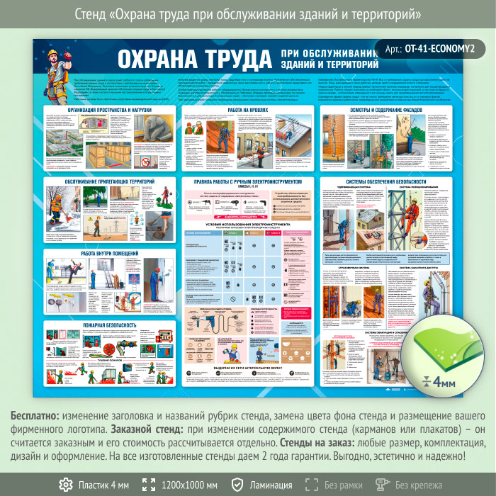 Стенд «Охрана труда при обслуживании зданий и территорий» (OT-41-ECONOMY2) в Уфе купить