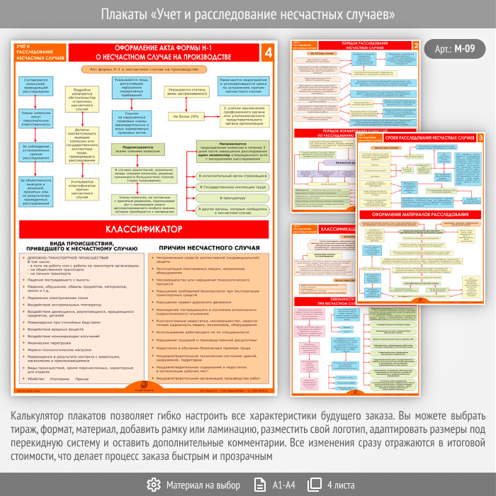 Плакаты «Учет и расследование несчастных случаев» (М-09, 4 листа) в Уфе купить